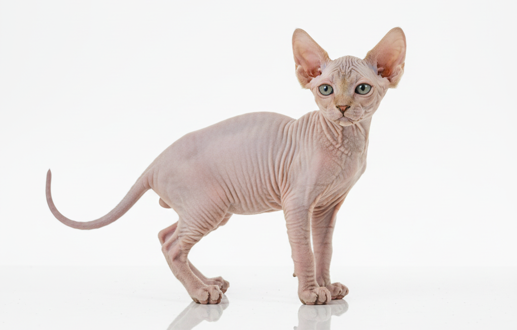 Nombre: Gato Sphynx Origen: Canadá Tipo: Gato doméstico sin pelo Reconocimiento: Raza oficial (CFA, TICA) ...